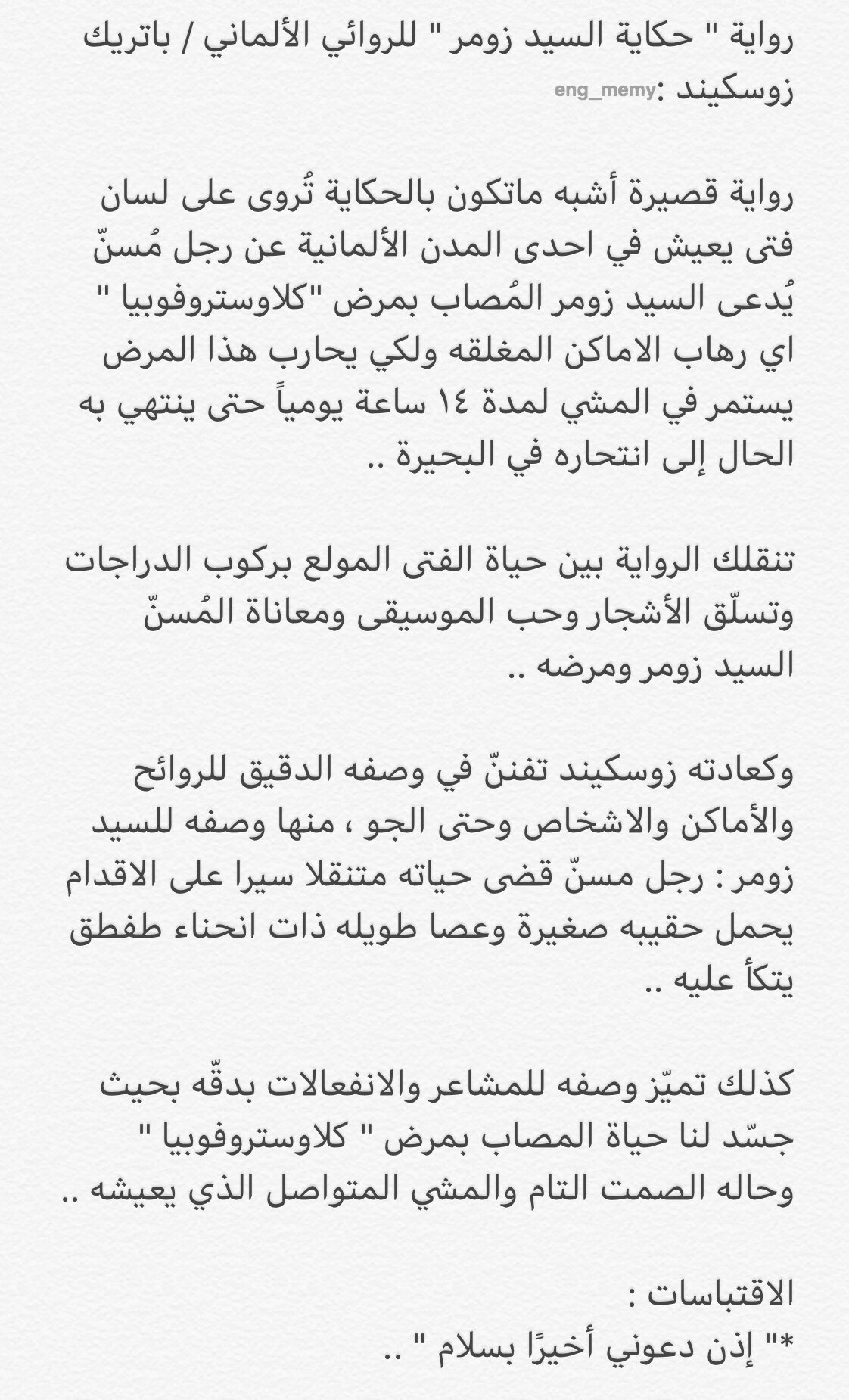 ريم On Twitter ١٢ رواية حكاية السيد زومر للروائي الألماني باتريك زوسكيند باتريك زوسكيند عام 2018 للقراءة أكثر ماذا تقرأ وطن ي قرأ وي قرأ الريم تقرأ Https T Co Se1lxsrup1