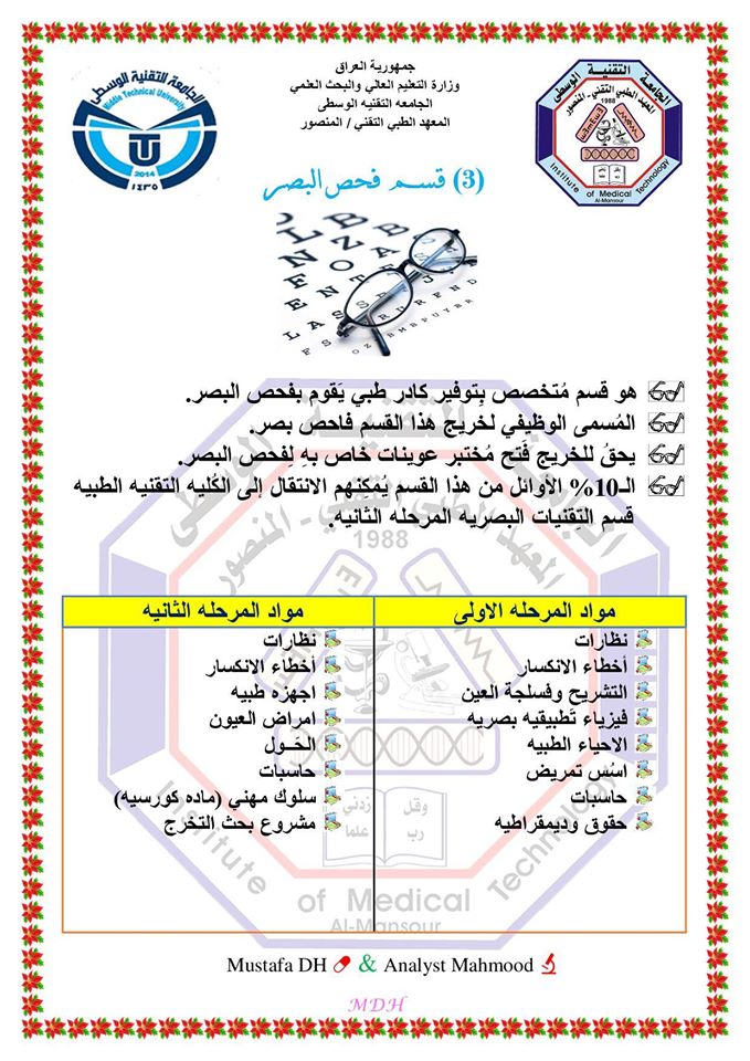 اقسام المعهد الطبي التقني المنصور معلومات بسيطه عنها مواد كل قسم 2016