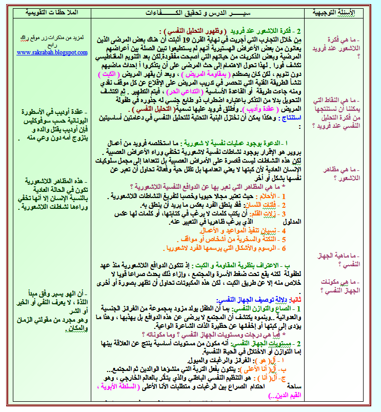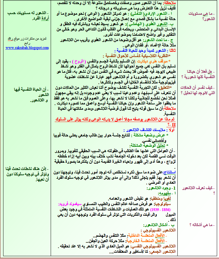 مذكرات الشعور واللاشعور المادة الفلسفة موقع راك رابح
