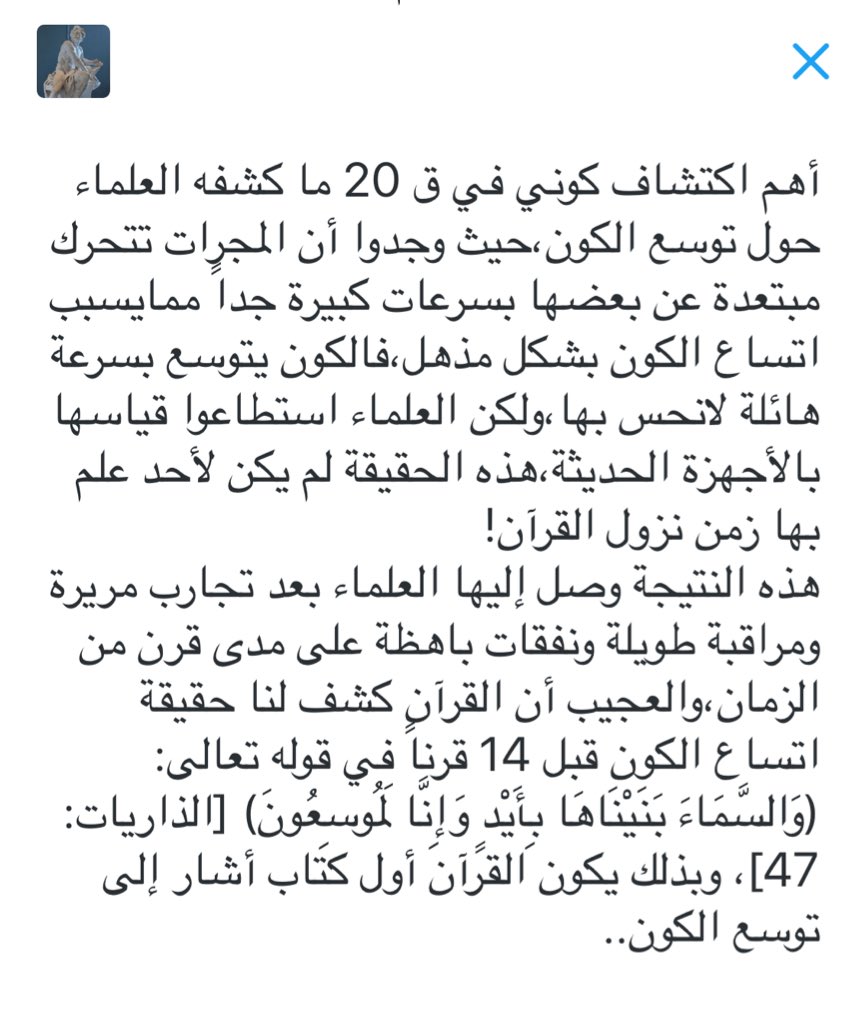 الاسكندر المقدوني On Twitter القران يتحدى إكتشاف توسع الكون و الس م اء ب ن ي ن اه ا ب أ ي د و إ ن ا ل م وس ع ون اعجاز Https T Co Qev38svygi