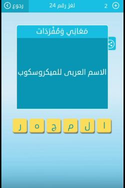اجابة سؤال الاسم العربى للميكروسكوب من لعبة رشفة لغز رقم 24 للمجموعة الثالثة صقور الإبدآع