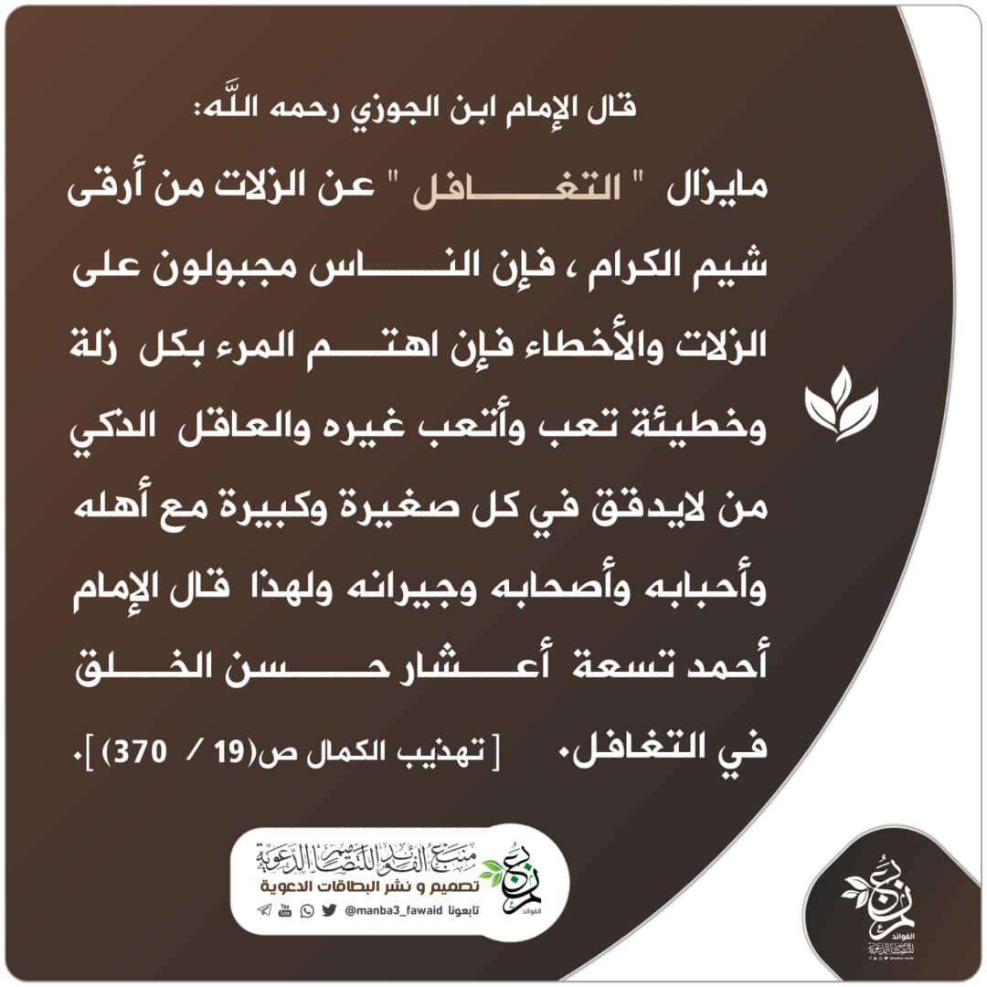 أ د بسام الشطي Twitterissa التغافل عن الزلات كما يراها ابن الجوزي رحمه الله Http T Co Kyyg4hhr