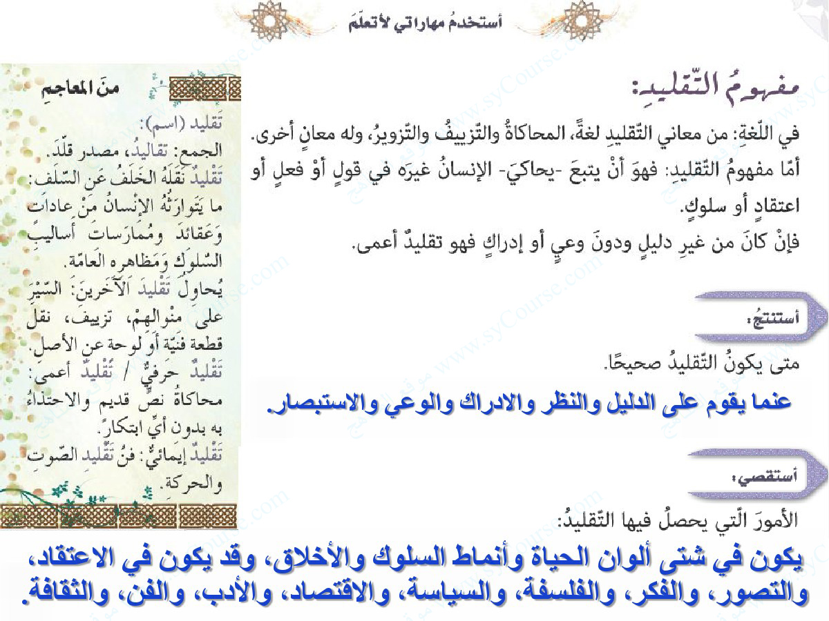 درس التقليد الأعمى الصف التاسع تربية اسلامية الفصل الثالث المناهج الإماراتية