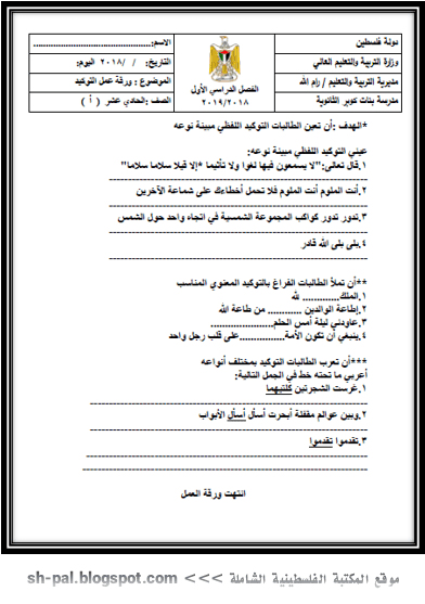 ورقة عمل لدرس التوكيد للصف الحادي عشر الفصل الأول المكتبة الفلسطينية الشاملة