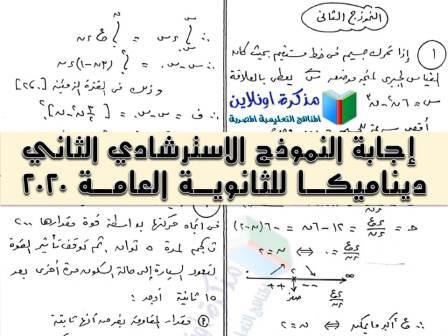 إجابة النموذج الاسترشادي الثاني ديناميكا للصف الثالث الثانوي 2020