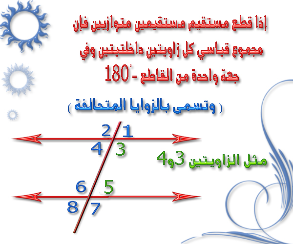 مستقيمان يقطعهما مستقيم ثالث موقع الرياضيات