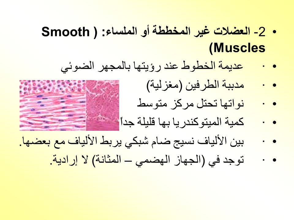 مقارنه بين العضلات الملساء والهيكليه والقلبيه المرسال