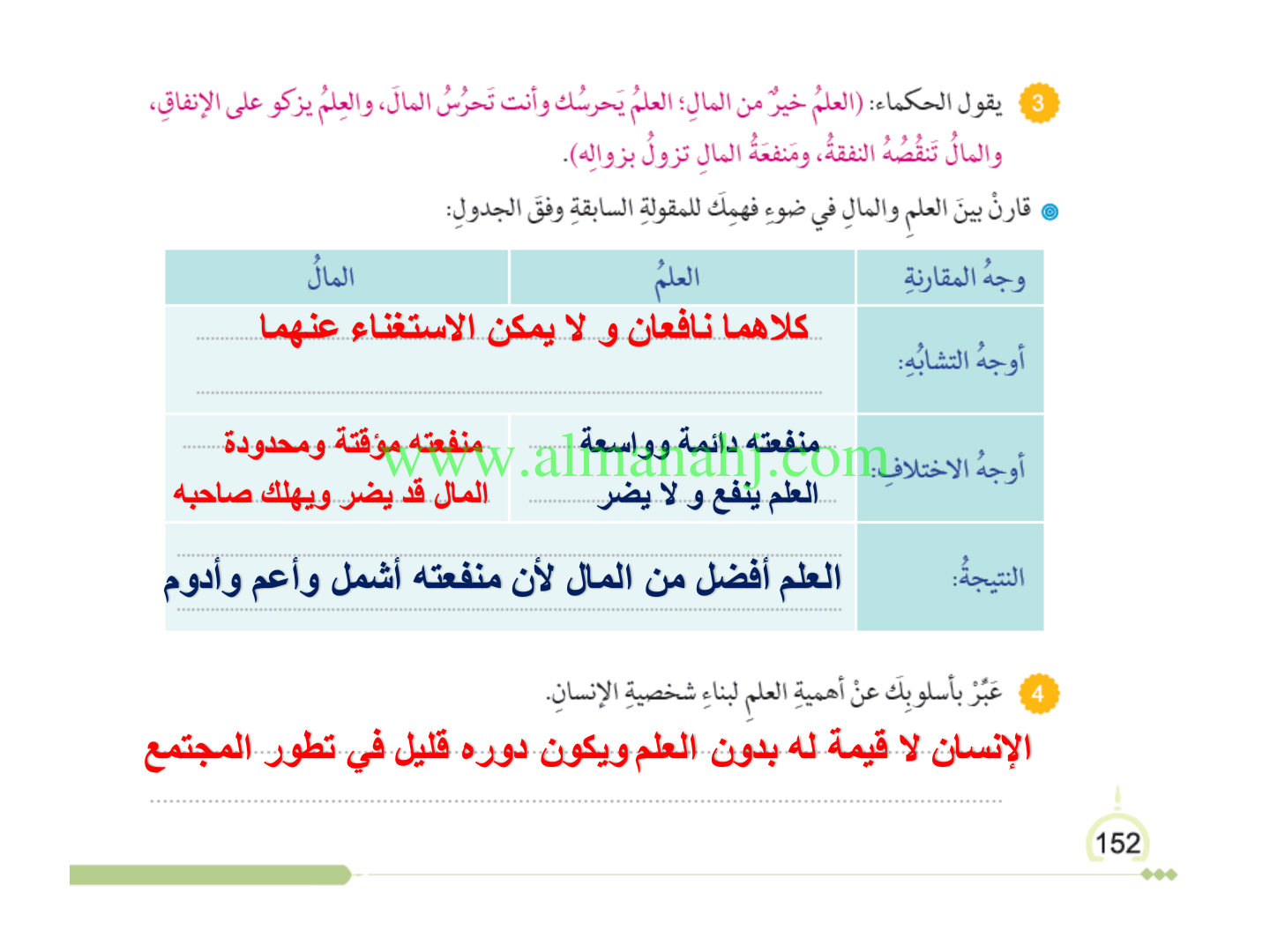 اجابة درس العلم نور ورفعة لمادة التربية الإسلامية الصف الثامن مدرستي الامارتية
