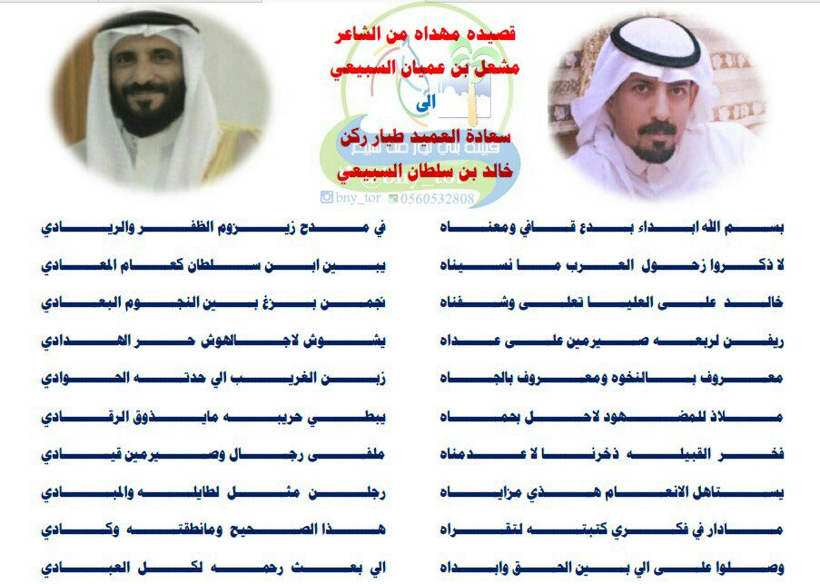 ملتقى قبيلة بني ثور سبيع Pa Twitter اهداء قصيدة مهداة إلى سعادة العميد طيار ركن خالد بن سلطان الثوري من كلمات الشاعـر المتميز مشعل بن عميان الثوري