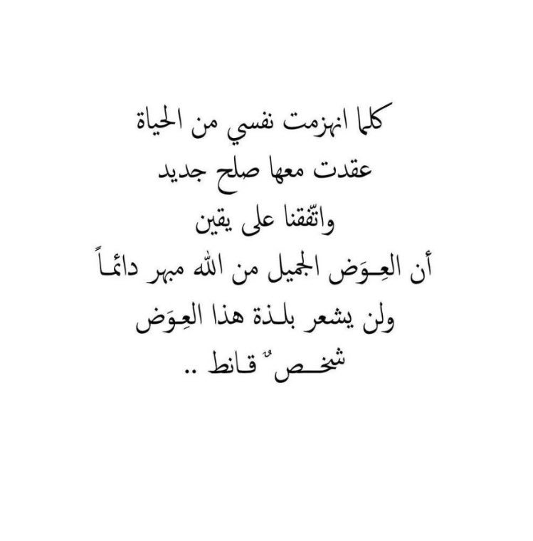 كلما انهزمت نفسي من الحياة عقدت معها صلح جديد واتفقنا على يقين ان العوض الجميل