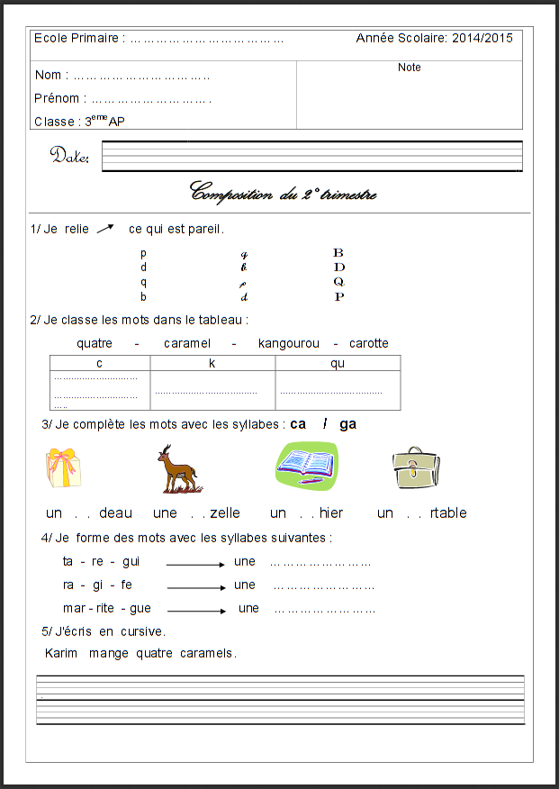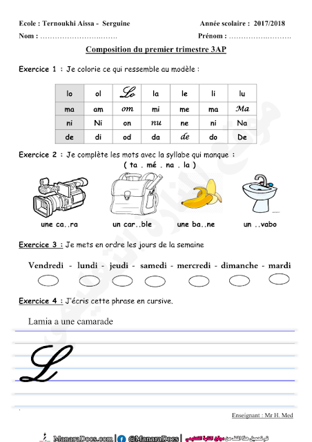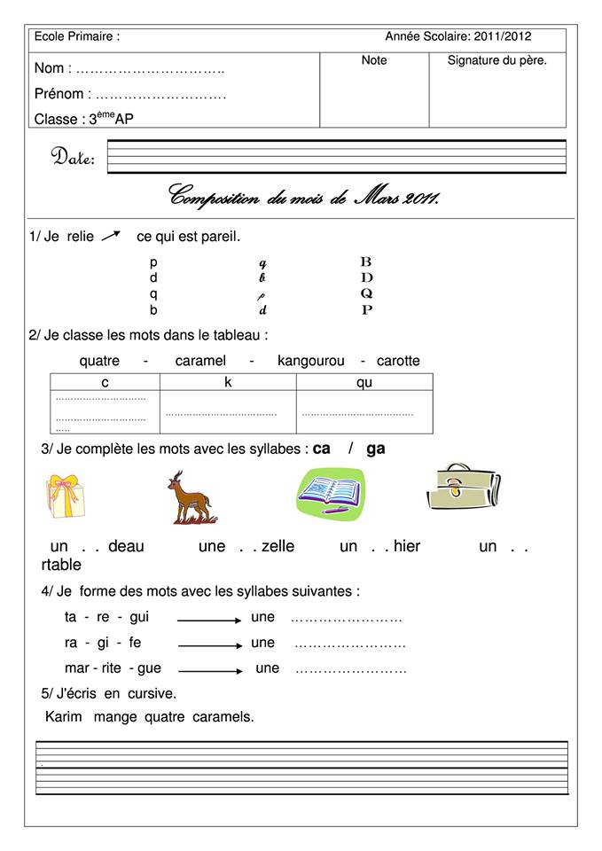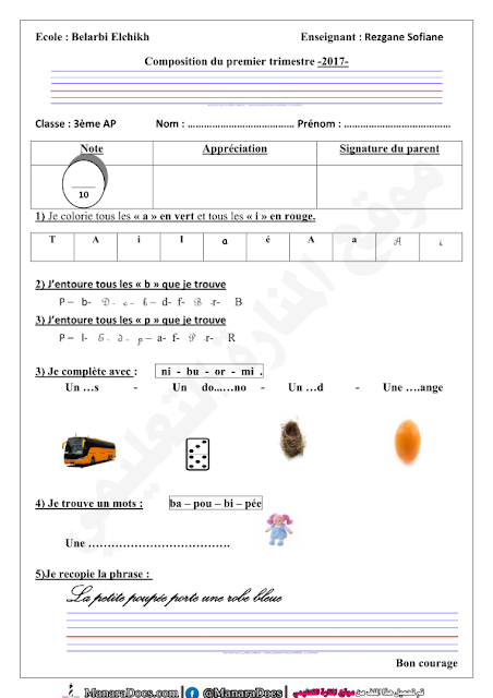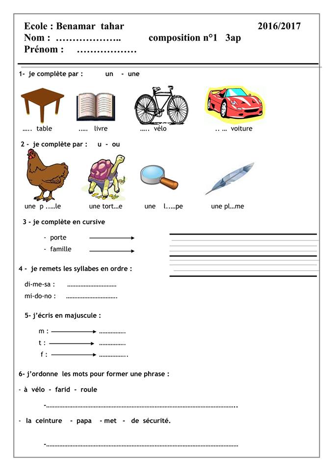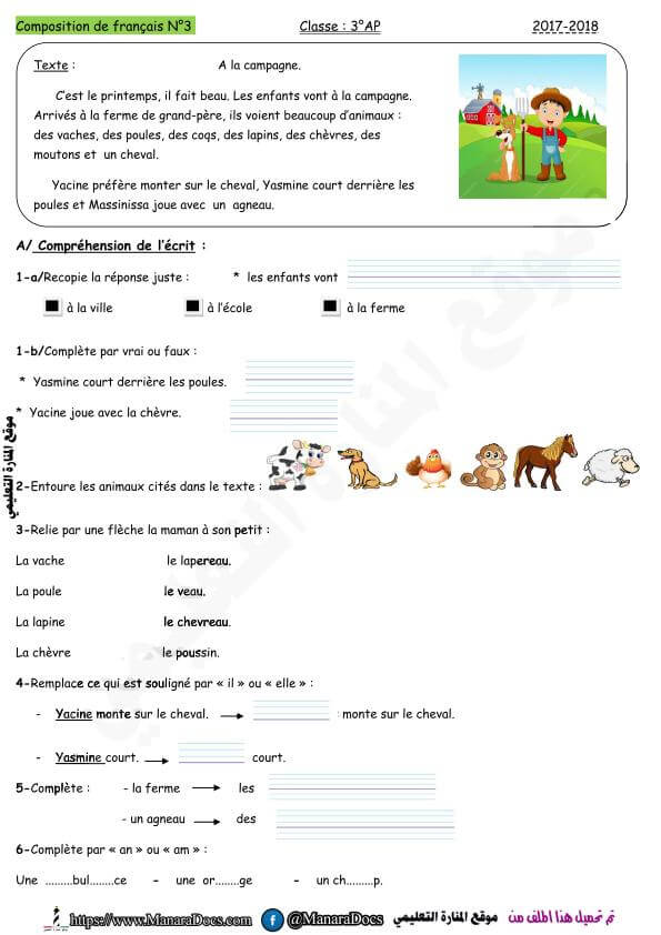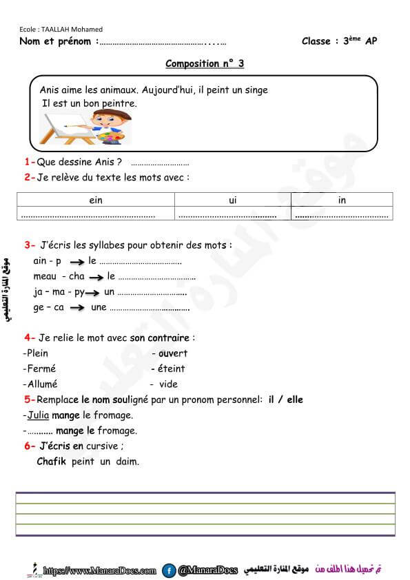 اختبار الفصل الأول في اللغة الفرنسية للسنة الثالثة ابتدائي Composition De 1er Trimestre Pour Les 3 Youtube