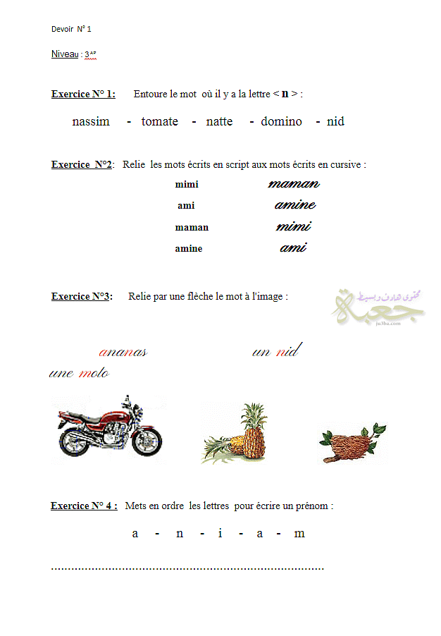 إختبارات الفرنسية للسنة الثالثة إبتدائي الجيل الثاني