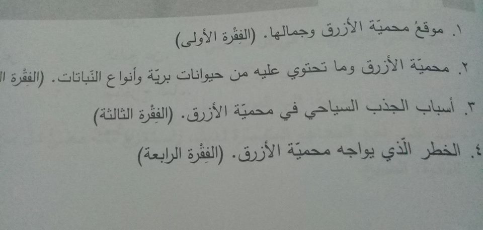بالصور معاني وافكار درس محمية الازرق لمادة اللغة العربية للصف السابع الفصل الأول منتديات صقر الجنوب