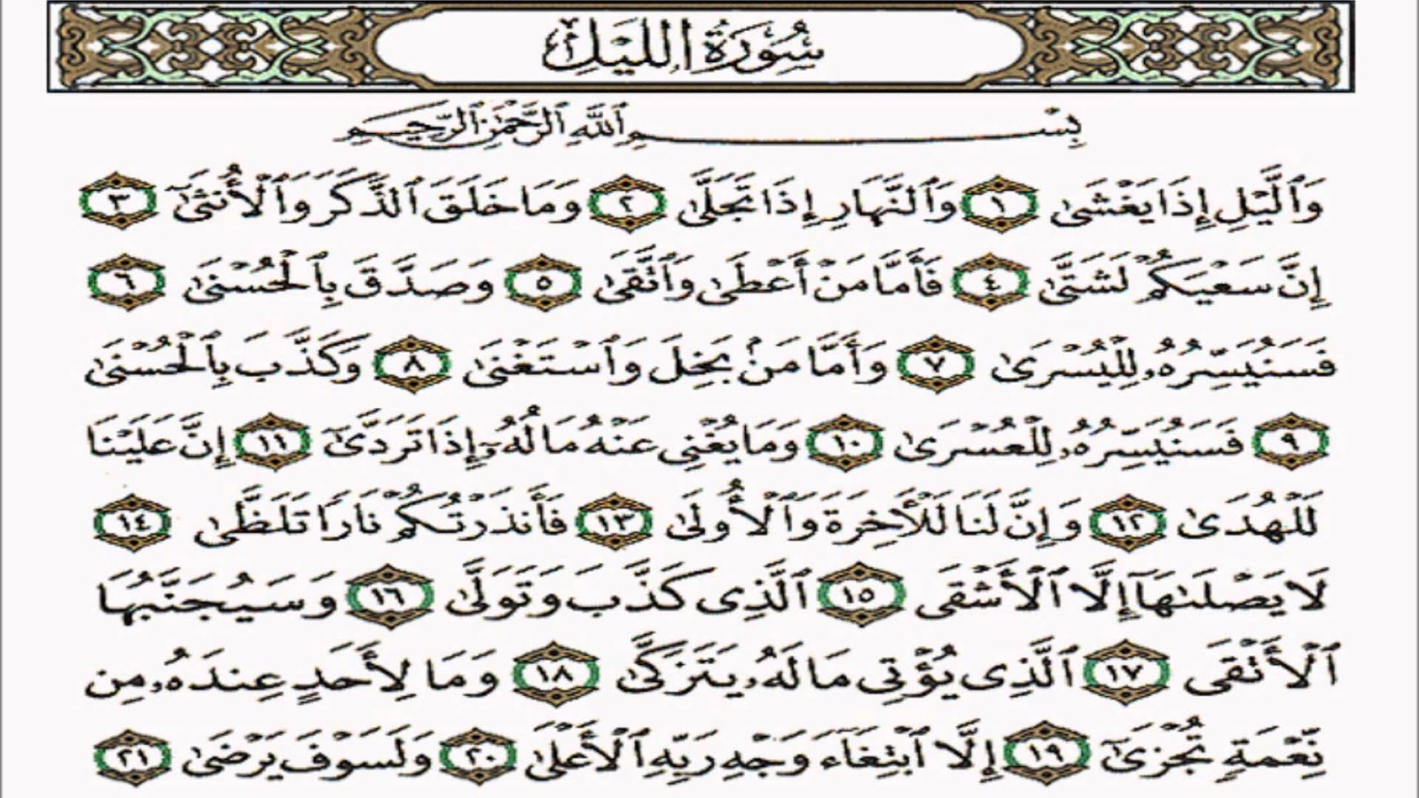 سورة الليل سورة الليل مكتوبة سورة الليل كاملة