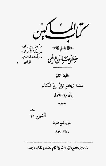 كتاب كتاب المساكين لمؤلفه مصطفى صادق الرافعي الكتاب الالكتروني