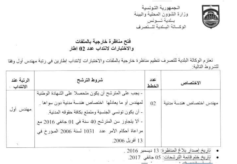 مناظرة الوكالة البلدية للتصرف انتداب مهدسين في الهندسة المدنية مناظرات وعروض التشغيل في تونس والخارج Jobs Tunisia Blogspot