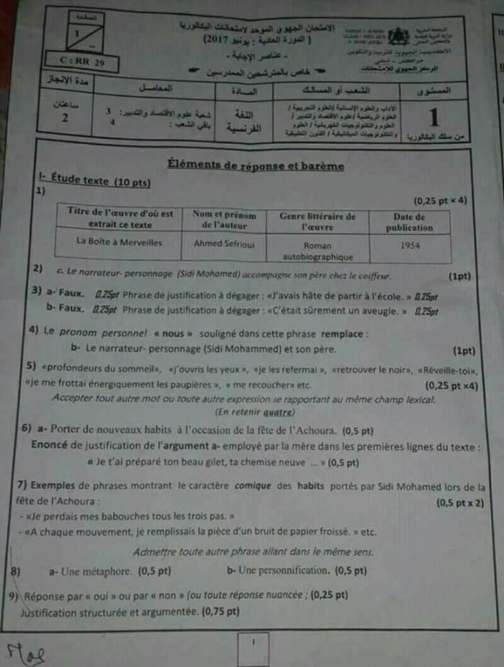 تصحيح الإمتحان الجهوي 2017 مادة اللغة الفرنسية جهة سوس ماسة