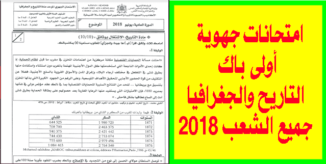 امتحانات جهوية أولى باك التاريح والجغرافيا جميع الشعب 2018