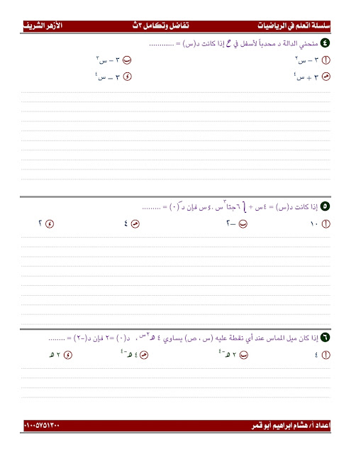 امتحان الازهر تفاضل وتكامل 2020 Pdf