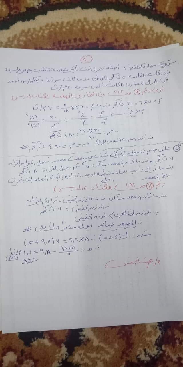 كشكول معلم رياضيات يقدم نموذج إجابة امتحان الديناميكا الثانوية العامة 2020