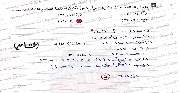 اجابة امتحان التفاضل والتكامل 2019 للثانوية العامة الإجابات المسربة