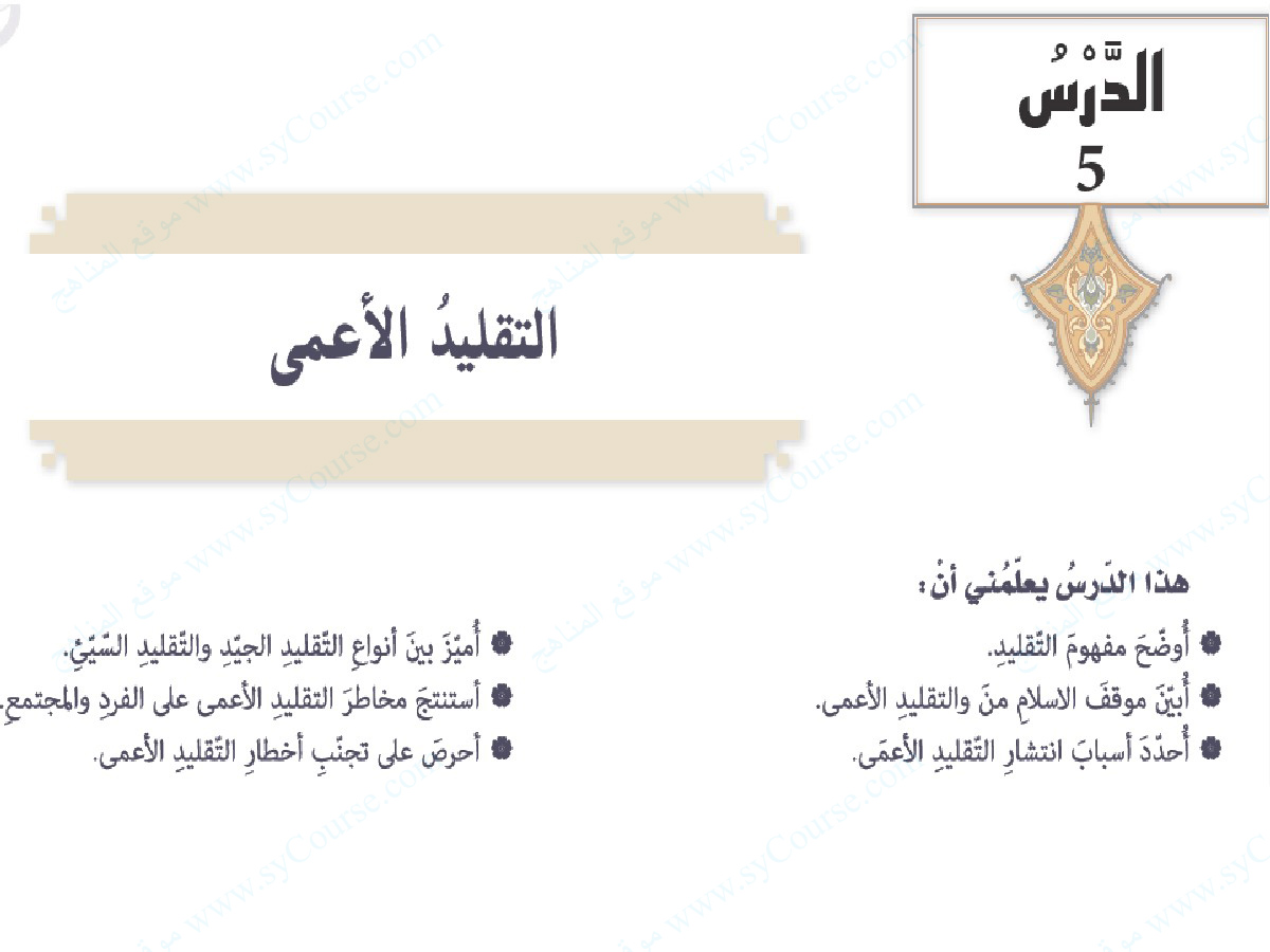 درس التقليد الأعمى الصف التاسع تربية اسلامية الفصل الثالث المناهج الإماراتية